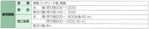 4.老朽管の問題点(腐食・クラック・浸入水や木の根の侵入、等)を完全に解決できる 。